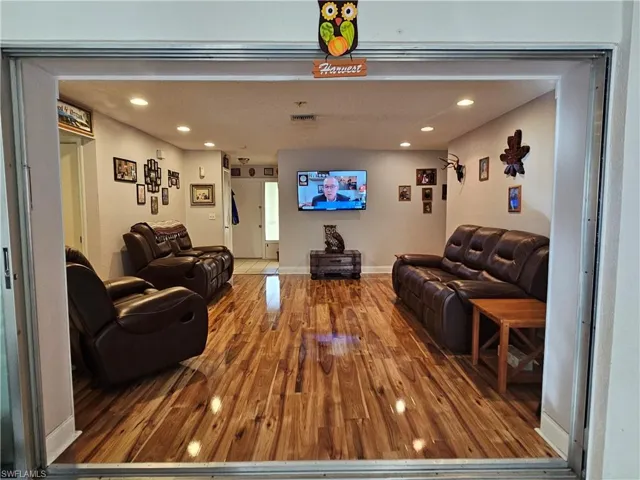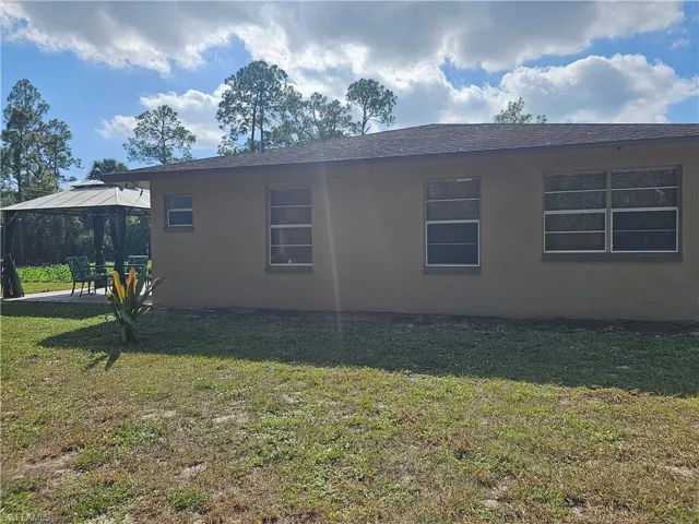 Come enjoy the tranquility that this 3/2 with den has to offer. Located on a beautifully cleared 1 acre lot, with fruit trees, pine trees and a large garden with separate irrigation. 2 sheds, 2 driveways and a great patio with gazebo equipped with lights. Great for entertaining, grilling out relaxing and listening the birds and watching your garden grow. Plenty of room to add a pool or hot tub! This property has pecan trees, and a tangerine tree. The roof is 2017, water heater is a 2009, AC unit is 2014. The living room has a step down into the den/office area. Ceiling to floor wooden shelves and has sliders to separate den from living room. Kinetico water system, new stove, and custom wooden blinds in kitchen and dining room. Exterior of home was freshly painted 2/2025. Located minutes from Joel Blvd, SR80/Palm Beach Blvd, Lee Blvd and the Caloosahatchee River. Don’t let this one get away!