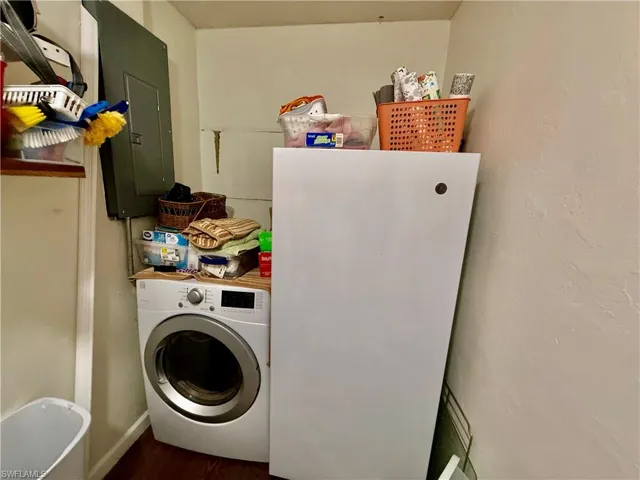 Beautifully maintained 2 bedroom cement block home in the popular Wedgewood community, CENTRAL WATER AND SEWER and walking distance to the stores on Homestead Rd, NEW DIMENSIONAL SHINGLE ROOF IN 2021, NEW CENTRAL HEAT AND AIR IN 2019, NEW WATER HEATER IN 2023, NEWER SQUARE D ELECTRICAL PANEL BOX, FENCED BACKYARD NEW IN 2023 with double gate on one side for larger access, covered front porch, NEWER LUXURY VINLY PLANK FLOORS THROUGHOUT (the photos show throw rugs over the luxury vinyl plank floors) newly remodeled kitchen and bath, newer soft close doors and drawers, butcher block countertops with stainless steel appliances including vent hood over stove, newer sink and faucet, new vanities and toilet in the bathroom with newly tiled shower/tub area, indoor laundry room with laundry tub, 14 X 10 enclosed den with newer PGT windows, 16 X 9 storage room/workshop off of the carport, living room with built in decorative shelving, light and bright throughout, newer exterior doors as well as interior panel doors, minutes to I-75, Ft Myers and SWFL International Airport, NO FLOOD INSURANCE REQUIRED. LEHIGH IS THE HIGHEST ELEVATION IN LEE COUNTY.