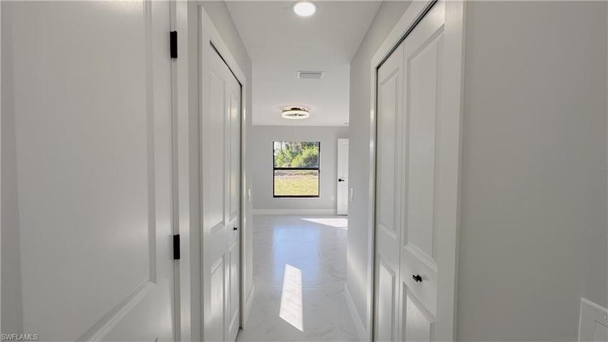 NEW CONSTRUCTION! THE SELLER IS WILLING TO CONTRIBUTE UP TO $10,000 TOWARDS BUYER’S CLOSING COSTS WITH A FULL-PRICE OFFER. VIRTUAL TOUR LINK AVAILABLE. This 3 bedroom plus den, 2 bathrooms home is completed. Tile floors, and quartz countertops in kitchen and bathroom. Two-car garage and paved driveway. Stainless steel kitchen appliances. Master suite with two walk-in closets, and bathroom with dual sinks, glass shower enclosure, and separate toilet. Spacious screened lanai. The house is located in a quiet neighborhood and is close to Sunshine with quick access to Ft Myers and I-75.