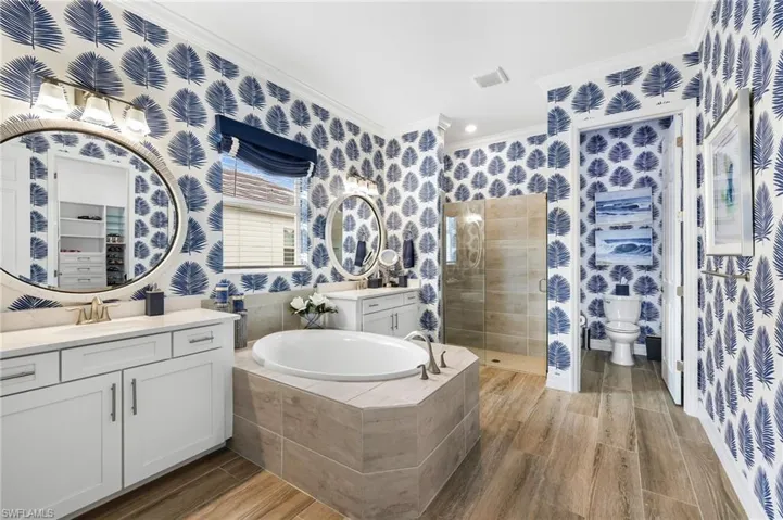 Welcome to 13528 Blue Bay Circle, an expansive 4 bedroom plus den, 3 bathroom residence in the incredible resort-style lakefront community of WildBlue. Spanning 2,724 square feet of luxurious living space, this rarely-available Richmond floor plan is a masterpiece of modern design. The open concept design creates an inviting atmosphere, perfect for both entertaining and everyday living. The professionally designed interior showcases sophisticated custom finishes and high-end details throughout, including custom paint, wallpaper, trim work, window treatments, and more. Step outside to your massive 50-foot wide travertine pool deck complete with a heated pool and waterfall spa, all with a stunning southern exposure view of the boatable 225-acre Lake Vista with the option to add a private dock and boat lift. The large covered lanai is complete with no-maintenance wood ceilings and a natural gas stainless steel outdoor kitchen, and is protected by an automatic rolldown kevlar storm screen. Enjoy plenty of storage space or room for a golf cart with the attached three-car garage. WildBlue’s amenity peninsula provides breathtaking views of the 435-acre WildBlue Lake and includes a resort-style pool, separate lap pool, sandy lakefront beach, fitness center with studios, locker rooms and saunas, full-service spa, indoor restaurant and bar, poolside restaurant and bar, tennis and pickleball courts, a pro shop, basketball, boat ramps to over 800 acres of freshwater lakes, boat slip rentals, kayak storage, and more. Don’t miss this incredible opportunity—schedule your private viewing today.