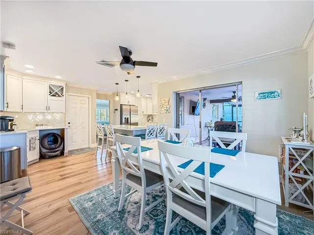 Come see this beautifully updated and meticulously maintained 3 Bedroom, 2 Bathroom pool home with a 2-Car Garage located in a NO flood zone with city water & sewer assessments IN & PAID! The interior was fully remodeled in 2022 and shows like a model. Upgrades include new laminate flooring, baseboards, crown molding, granite countertops in the kitchen and bathrooms, ceramic tile backsplash, and slow-close drawers and cabinets. The kitchen features newer LG appliances along with an LG washer and dryer. A wet bar adds the perfect touch for your entertaining needs. Major system updates provide peace of mind: Roof (2022) with 3rd nail for insurance savings; A/C replaced (2021) + new attic ductwork (2023); whole home repiped (2021); new electrical panel; garage door replaced (2021); hurricane panels/shutters for windows and sliders. Enjoy the Florida lifestyle by stepping outside into your private backyard oasis featuring a heated pool, new pool pump, updated pool cage screens, fully fenced yard, shed, raised garden beds, and even a fruit cocktail tree (producing lemons, limes, and oranges). Offered furnished, this property is perfect as a second home, vacation retreat, investment opportunity, or as your primary residence to create your own family memories. Ideally located near Cape Coral Hospital, downtown Cape Coral, Cape Coral Yacht Club, Tarpon Point, Cape Harbour, and just a short drive to Fort Myers, Pine Island, and Matlacha. Enjoy easy access to boating, beaches, golfing, airports, shopping, restaurants, parks, and boat ramps. Don’t miss out on this one.