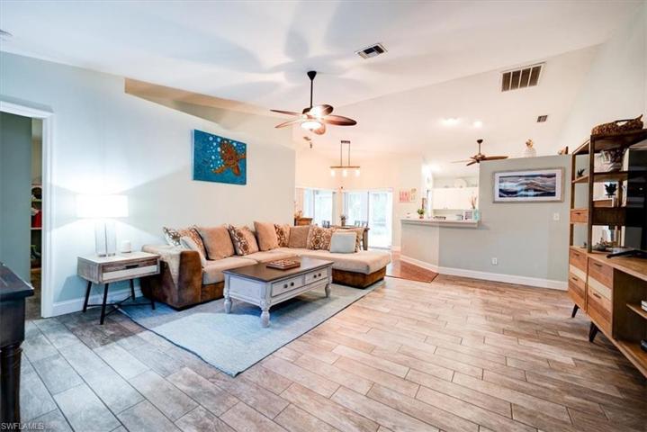 This very well-maintained, large 3-bedroom, 2-bath home is located on a beautiful 2.27-acre estate with a beautifully landscaped yard, featuring a paved circular driveway, a private backyard fire pit, nestled in a cozy lighted area perfect for friends and family get-togethers, or feeding the tamed squirrels, or rare bird watching. This home offers a large Florida room with high-volume vaulted ceilings connecting the kitchen, dining, and family areas, making it ideal for entertaining. The kitchen has like-new stainless steel appliances and a custom country pantry. Recent improvements include an Air Conditioner System, Water System, Flooring, Ceiling Fans, Roof, Interior/Exterior Paint, Remodeled Bathrooms, Custom Closets and Shelving, Custom Mud Room, Custom Laundry, Front Door, and so much more. This property is updated and ready to move in. In addition, the expansive screened lanai offers a great opportunity for you to relax and enjoy the beautiful Florida wildlife and landscape. The yard is fenced, and the location is great. Just around the corner from several new shopping centers.