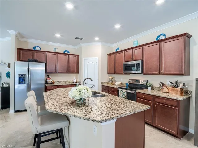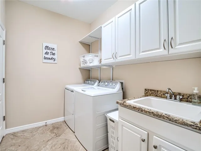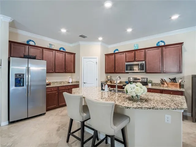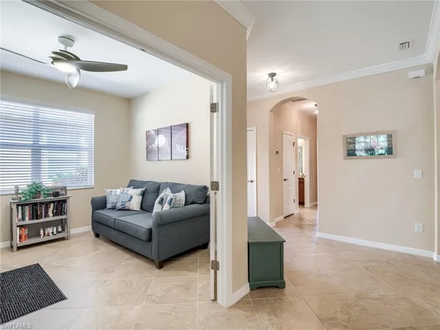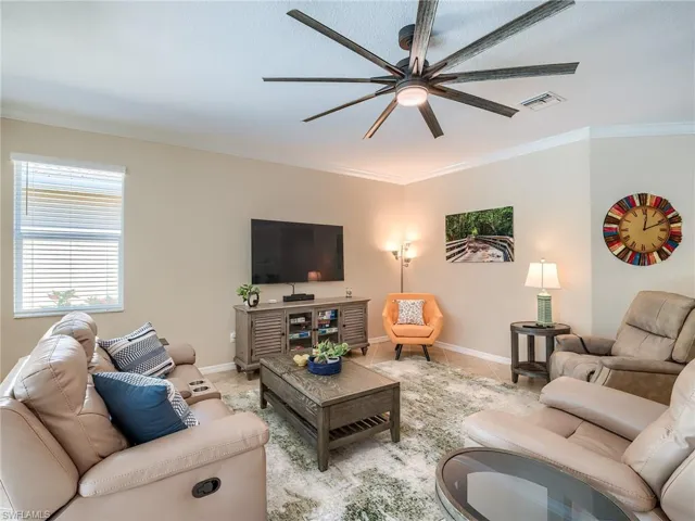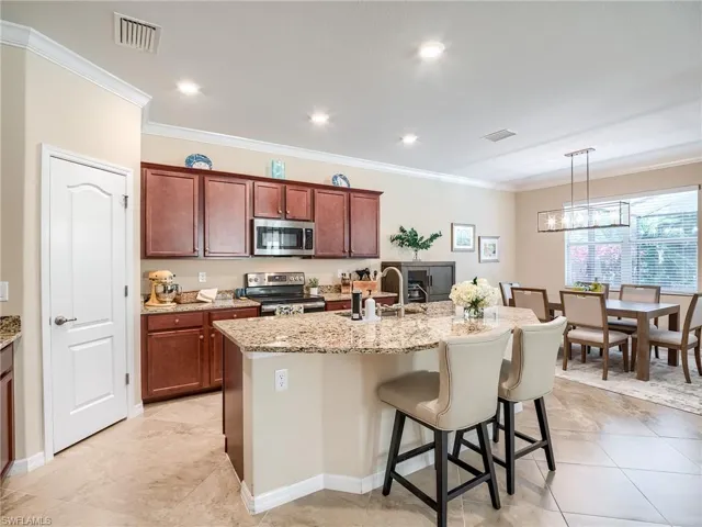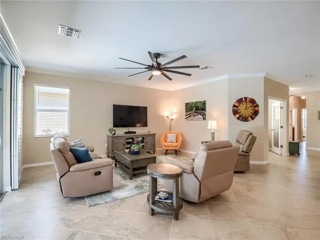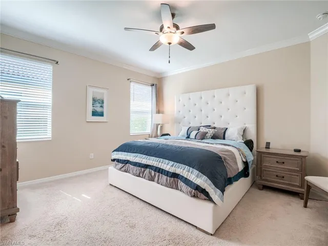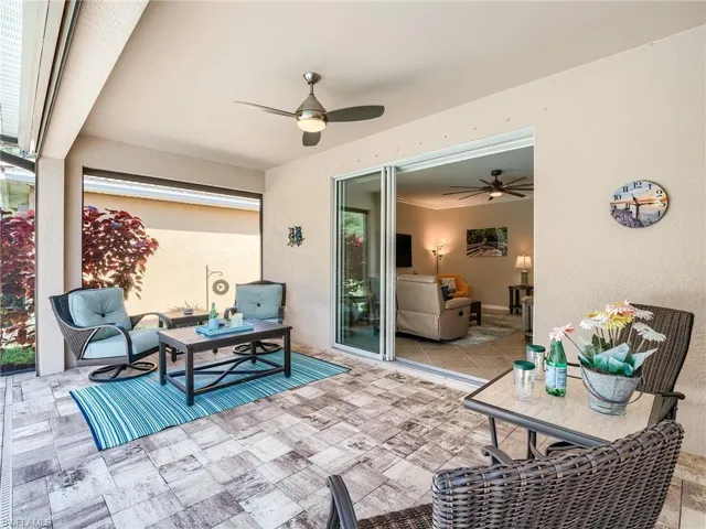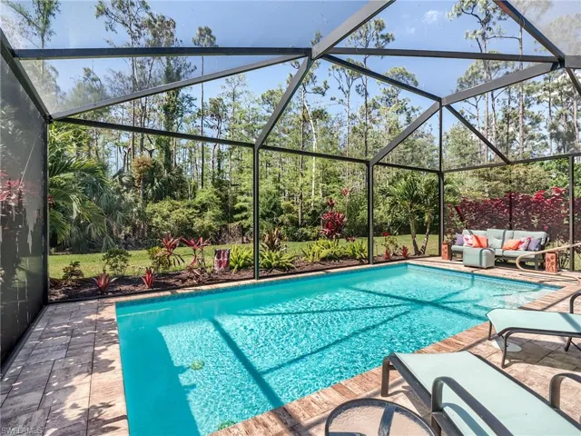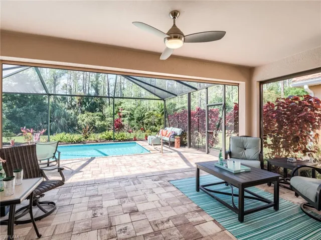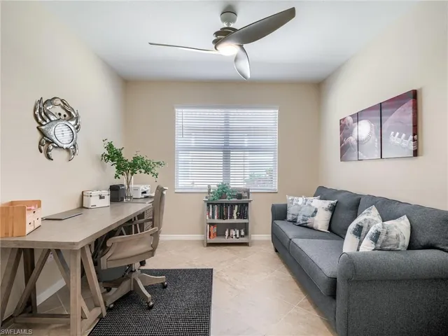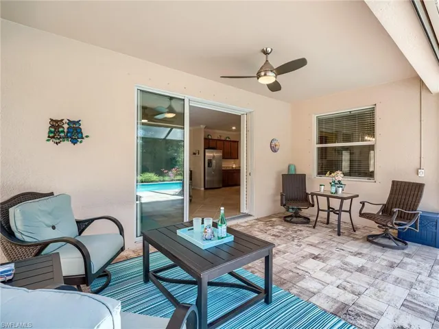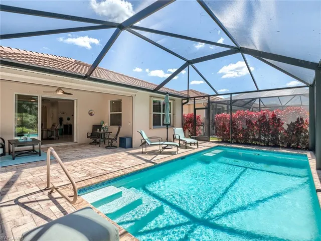 Welcome to your dream home in The Prato neighborhood at Pelican Preserve, one of the nation’s most recognized 55+ communities. This single-family home offers the perfect blend of luxury and comfort with its 2 spacious bedrooms, 2 bathrooms, and 2-car garage with extra storage space. Step inside and be greeted by the open and luxurious layout, featuring 10-foot ceilings complimented with extensive crown molding, and beautiful 20″ diagonal tile flooring. The kitchen is a chef’s delight, boasting huge one level island with granite counters and stainless-steel appliances. The office provides a quiet space to work or pursue your hobbies. Built in 2019, this home offers modern amenities at a fantastic value. One of the many highlights of this home is the large 19′ x10′ covered lanai and custom-built heated pool, which overlooks a quiet 4-acre protected preserve. Imagine sipping your morning coffee or hosting gatherings with friends and family in this serene setting. The easy-to-use Storm Smart brand accordion shutters and electric lanai and front door roll downs provide peace of mind during stormy weather. Residents of Pelican Preserve can enjoy a wide range of amenities and activities at the Town Center. This includes access to a fully staffed fitness and movement center, as well as indoor, resort-style, and lap pools, 8 tennis and 12 Pickleball courts for sports enthusiasts. Two restaurants with outdoor dining options provide a variety of culinary experiences, while live entertainment, planned social activities, and a concert pavilion ensure a vibrant and engaging lifestyle. Optional golf memberships are available for those who love to hit the links. The location of this home is highly convenient, with proximity to shopping centers, local and national dining establishments, medical facilities, and the international airport. Furthermore, the inclusion of a 1-year service plan by Home-Tech ensures that homeowners can avoid costly repairs for appliances and AC unit system.