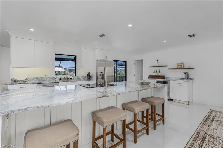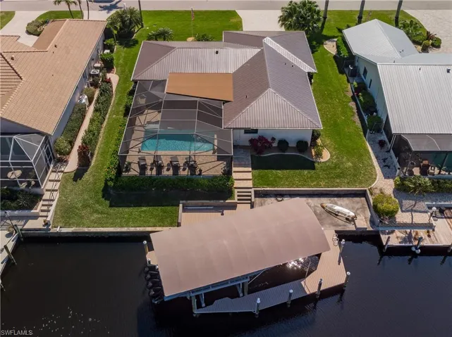Here is an amazing deal is SW Cape with just a short walk to Cape Harbour Marina and all the restaurants, shops and entertainment you could ask for. Only a 10-minute boat ride to the river with no bridges or locks to deal with and some of the best fishing SW Florida has to offer. This beautifully remodeled 3/2 with oversized garage is turnkey and move in ready. With its open flowing floor plan, it is great for entertaining. All the bedrooms have walk in closets, the guest bath also serves as a pool bath. This beautiful home has a newer pool and enclosure with an extra-large extended lanai and big summer kitchen. A massive newer dock with 20,000-pound boat lift and huge canopy to protect your favorite toy. This remodel was done prior to the hurricane. The new metal roof was installed after hurricane Ian but only by the sellers’ choice as the home suffered minimal damage and no water entered the home. The oversize garage with paver driveway can fit 3 cars, has a service door to the dock and epoxy flooring. The massive kitchen has a bar with wine cooler and huge dining room. This home would make an excellent vacation rental. Don’t miss this opportunity as it will not last long. Call your agent, pack your bags and make 1509 Sw 54th Ter your new address in Florida today.