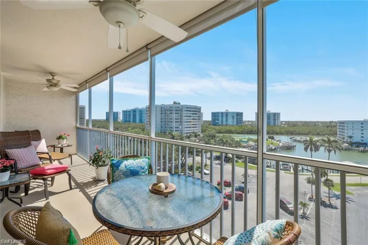 YOUR PENTHOUSE PARADISE awaits!! This 8th floor PENTHOUSE unit is offered FURNISHED and beautifully decorated. TOTALLY RENOVATED and updated throughout, even with IMPACT GLASS SLIDING DOORS! Kitchen and bathroom are tastefully remodeled, and the unit has been upgraded to tile floors throughout- no carpet to deal with! Water heater is BRAND NEW, and AC Compressor is only 3 years old! Upon walking in you will be impressed with the open space, as the kitchen has been opened up, so you can enjoy the beautiful unobstructed view of the marina, boats, and bay- all while preparing dinner! Walk out to your large, oversize lanai, and you will get the best of both worlds- a MARINA and BAY view directly ahead, and a GULF VIEW to your side- you pick! Enjoy your morning coffee watching the boats go by, or enjoy your evening wine watching the gorgeous evening sky over the GULF! Note that the 8th floor/top floor vantage point is a game changer! And for your beach gear? Large, private storage unit right on your own floor, giving you the extra space you need. Downstairs you can find a nicely remodeled community room, a secure lobby, and your very own on-site building manager! A beautiful private pool awaits right outside your lobby door- no sharing with other buildings! Jump in and take a quick dip, or take a short walk to the WORLD RENOWNED DELNOR WIGGINS STATE PARK BEACH! Are you a boater? Community BOAT SLIPS available for lease when available- and the big water is only minutes away by boat- couldn’t be easier. Want exclusive dining and shopping? No problem- ride your bike to eat at the Ritz Carlton, or the Mercato Center, lovingly called the “downtown of Uptown.” Tremendous rental potential and generous rental policy! Have it all, but don’t miss your chance!