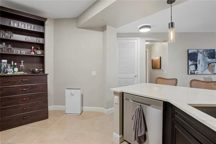 Available May 1-December 31 for $2,000 per month, available annually at $3,000 per month. Exceptional 2 bedroom, 2 bath 3rd floor condo in the Residences at Coconut Point! Looks and feels Like a Model with designer furnishings included. Highly desirable floor plan loaded with recent custom upgrades to kitchen and baths. Located in the most sought after building with a deeded covered parking space, close to elevators and amenities. Offering 1546 sq. ft under air, 2 master suites with ensuite baths and custom closet organizers. Beautiful kitchen with white cabinets, quartz counters, stainless appliances and large walk-in kitchen pantry. Custom built-in cabinets & remote controlled fireplace, newer AC unit, upgraded lighting, 8 ft doors, impact glass windows and slider doors with outside lanai great for entertaining. Unlike anything on the market! This is an amazing opportunity to live and walk around shops and restaurants outside your backdoor. Resort style amenities include pool, fitness center and clubhouse. Close to shopping, dining, interstate, beaches, University and Airport!
