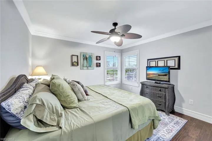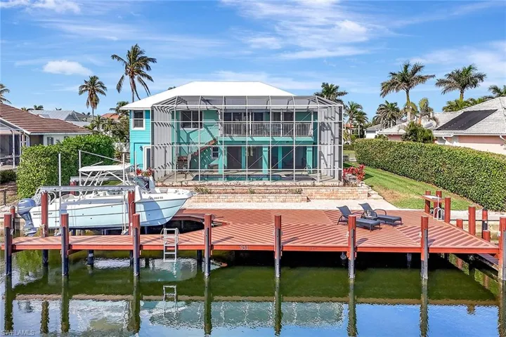 Welcome to this tropical , waterfront paradise where every detail has been thoughtfully curated to deliver the ultimate in relaxed comfort, coastal charm, and modern convenience. Perfectly positioned on an oversized canal lot with coveted southern exposure, this completely renovated Florida-style, 3 bedrooms & 3 full baths residence is more than a home—it’s a call to enjoyment and relaxation. Step into your private resort-style retreat, where a fabulous outdoor oasis awaits. Entertain effortlessly in the expansive covered lanai with a designer outdoor kitchen, cozy fire pit, and sparkling heated pool and spa—all framed by sweeping water views and picture-perfect sunsets. Inside, the open-concept second-level living space is bright, breezy, and beautifully appointed. The great room flows seamlessly into the dining area and gourmet kitchen, showcasing rich wood cabinetry, a massive quartz island, stainless steel appliances, and exceptional storage. Vaulted ceilings, plantation shutters, recessed lighting, and high-impact windows and doors elevate the entire space with an inviting feel. Each bedroom features custom-built functional closet systems, ensuring comfort and organization, while two private balconies invite you to unwind alfresco, morning or night. For boating enthusiasts, this is a true waterfront dream. Your private dock features a sun deck, fish-cleaning station, two access ladders, and a kayak/jet ski launch—the gateway to endless adventure right from your backyard. The ground level also features a garage lover’s dream—a sleek, space with Race Deck flooring, wall-mounted storage, room for two cars + golf cart, and a dedicated workspace—perfect for hobbies or projects. Other highlights offered include a smart security system, metal roof, completely fenced in, additional side yard, proximity to the beach, top-rated dining, and boutique shopping. Whether use as primary residence, vacation escape, or rental investment, this home checks every box. Offered fully turnkey furnished, ready to move in.