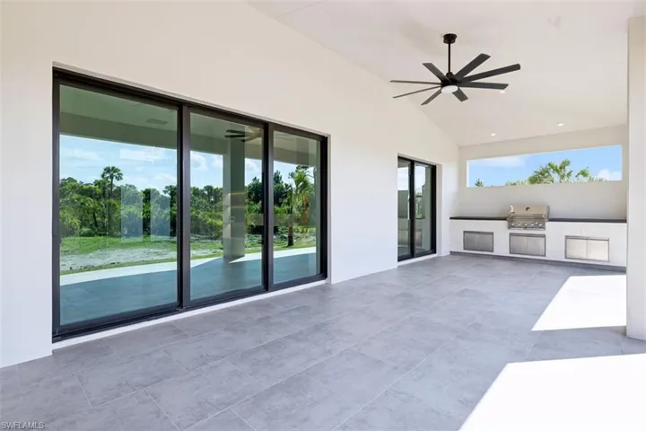 The master bedroom includes two walk-in closets and a luxurious en-suite bathroom. Step outside to a large lanai with a built-in BBQ, perfect for entertaining. Additional features include a double garage, ample parking, Low-E impact windows and doors, foam insulation throughout, and a reverse osmosis water treatment system, standing seam metal roof.