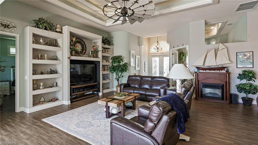 Premiere luxury Gulf Access Home on rare half-acre features 5/6 stall 1630’+garage with rear access*NEW 25KW generator with buried tank. The 160′ waterfront playground with massive composite dock including waterfront bar for dolphin and manatee shows, great fishing from dock, an expansive seating area, 16K covered lift and a captain’s walk equipped with water/electricity. Built in 2018, this 3 bedroom, 2.5 bath gem offers quick access to SW Florida’s Charlotte Harbor and Gulf of Mexico for world class fishing and restaurant/island hopping. This home’s open layout is ideal for entertaining. Notable features include zero corner sliding impact doors to a heated saltwater pool, an outdoor grilling area, spacious extended lanai with electric storm screens, and fenced side yard with patio to savor Florida’s sunsets. The living room is accentuated by a backlit coffered ceiling and an integrated media center. The kitchen, designed with an open bar setup, offers ample seating, granite countertops and panoramic views. The master suite resembles a high-end spa with roomy walk-in closets, dual vanities, and a walk-through shower. This home says Florida Salt Life! Comes partially furnished