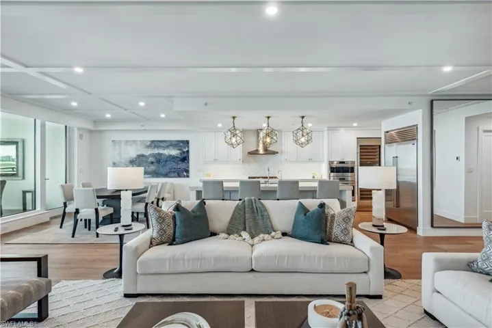 Kalea Bay’s 20th-floor unit in Tower 200 presents an unparalleled blend of luxury, comfort, and breathtaking views. This exquisite property, showcases an abundance of wood work including ceiling and wall details. 2002 offers four elegantly appointed bedrooms, each a serene retreat promising privacy, rest and relaxation. The designer furnishings are included with home and are professionaly chosen to enhance the finishes. Upon entering you are immediatley wowed by the view out of the Floor-to-ceiling windows, inviting natural light to illuminate the interior. The open-concept design encourages a fluid living experience, from the outdoor oversized lanai to the gourmet kitchen, equipped with state-of-the-art Wolf® and Subzero® appliances including wine cooler and steam oven. A large butler’s panty includes a second dishwasher and an abundance of storage. The master suite is a sanctuary of luxury, with walls of glass and the incredible view as your backdrop. Spa like bathroom with dual vanities, a soaking tub, and a separate glass-enclosed shower, all designed with the finest materials. The additional en-suite bedrooms, offers incredible views of the soon to be completed golf course. Residents of Kalea Bay enjoy exclusive access to a wealth of amenities, including rooftop pool and fitness center. Five-star amenties in your backyard with The Club at Kalea Bay . This 20th floor condo at Kalea Bay represents a rare opportunity to own a piece of Naples’ luxury waterfront living, where every detail has been carefully curated to offer an unmatched living experience. Whether basking in the glow of the sunset from your private Lanai or enjoying the community’s rich offerings, this property promises a life you dreamed about.