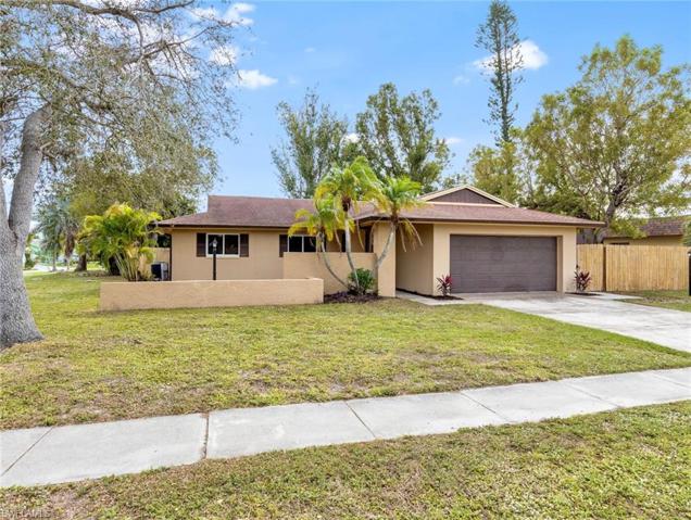 Welcome to your new home on this oversized corner lot, perfectly situated just across from the serene lake, offering a picturesque view. Privacy abounds with a fenced-in yard, providing a tranquil retreat that you can call your own. Step onto the large screened lanai, where you can relax and unwind in complete comfort, surrounded by the beauty of your surroundings. This residence boasts a fantastic location, conveniently close to shopping, renowned restaurants, and the pristine beaches of Fort Myers and Sanibel. Inside, discover the perfect blend of style and functionality with 3 bedrooms and 2 full baths, providing ample space for both relaxation and entertainment. The bedrooms feature brand new flooring, creating cozy living spaces. The kitchens upgraded with new stainless steel appliances, ensuring a sleek and contemporary culinary experience. Windows were updated in 2004, allowing natural light to flood the interior, creating a warm and inviting atmosphere. The expansive yard is an ideal playground for kids and pets, offering a safe and enjoyable space for outdoor activities. This home is clean and ready for you to move in and start enjoying the lifestyle you deserve.