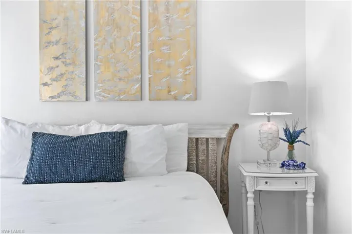 Located steps away from one of Collier County’s best-kept secrets, The Villas at Barefoot Beach feature magnificent white-sand beaches and beautiful sunsets just steps from your front door. Enjoy miles of blue-green waters of the Gulf of Mexico and low-maintenance living in this immaculate 3-bedroom, 3-bath end-unit villa that invites the sunshine in. The owner’s suite boasts a large private deck, a walk-in closet, a primary bath with dual sinks, a soaking tub, and a walk-in shower. Additional features include an updated kitchen, two guest bedrooms, a great room with a cathedral ceiling, and a screened-in lanai with sliders for year-round enjoyment. The Villas at Barefoot Beach has two community swimming pools, brick-paved streets, and a 24-hour gated entrance. This property is being sold turnkey furnished with tastefully updated furnishings and neutral decor.