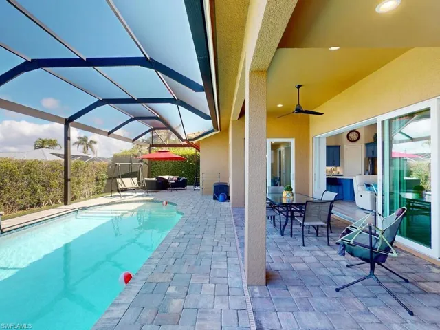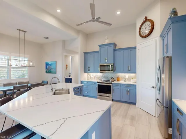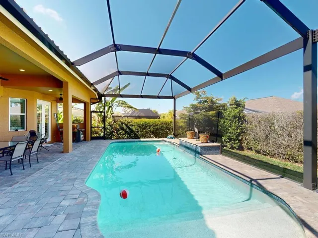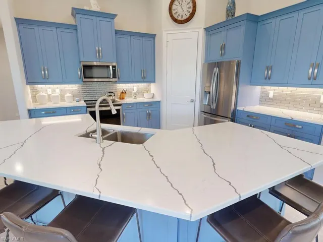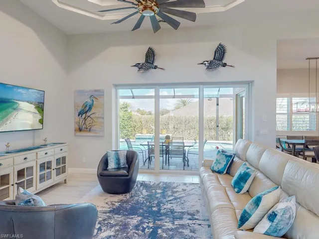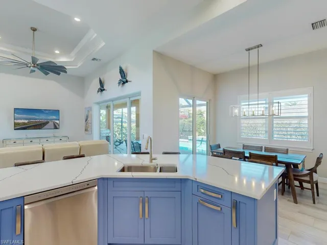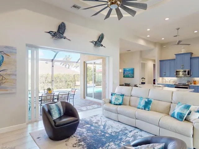 Paradise awaits you at this contemporary and coastal 2021 built home on Marco Island! This FCI Homes product is situated inland and centrally located near Frank E. Mackle Park! Enjoy the spacious and open floor plan with many upgrades throughout. From the moment you enter, you are captivated by the coastal ”island feel” and soaring ceilings. This 3 bedroom / 2 bathroom + den home is ready to move in! Enjoy the tile flooring throughout, Quartz countertops and stainless-steel appliances, eclectic blue colored cabinetry, extra deep bedroom closets, expansive lanai with ”picture screen cage”, heated pool, rear yard space, Culligan water treatment system and paver circular driveway. Let’s not forget the oversized 2 car garage and whole house generator! This Island home offers an oasis ready for one to make their own. The central location offers convenient access to all Marco Island has to offer including the YMCA, the park, beach, dining, shopping and more!
