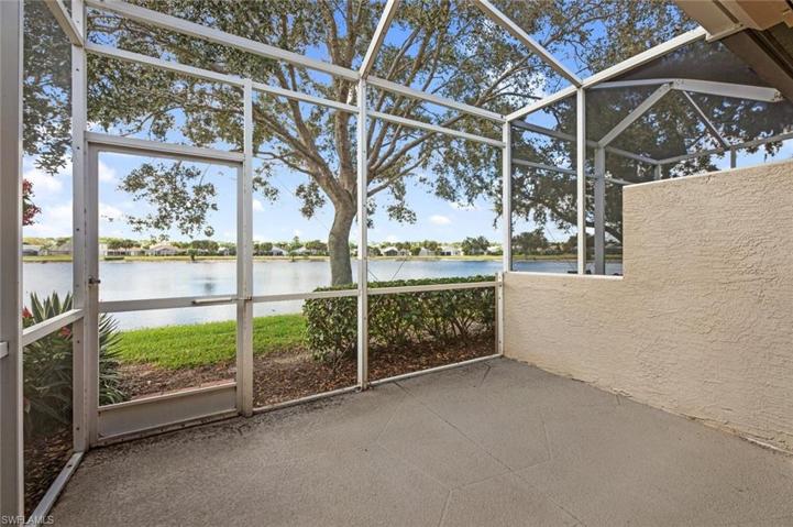 Tile throughout main living areas with laminate in both bedrooms. Upgraded kitchen cabinet doors with granite counters and nice backsplash. Eat in kitchen with breakfast bar overlooks the family room, den and extended rear lanai. Master bedroom has a bay window and walk in closet, attached bath with shower. Enjoy the Sunset and views of the golf course and lake. Stoneybrook amenities offer something for everyone! Exercise room, tennis courts, pickleball, volleyball, basketball, bocce ball and baseball field! The golf course is public so you can pay when you play. Conveniently located close to shopping, dining, interstate, beaches, university, and airport. Short walk to golf course clubhouse, CVS, Publix, Miromar mall and Hertz arena. 15 minutes from airport baggage claim. Low association fees include basic cable, internet, lawn and land maintenance, & reserves for exterior pressure washing, painting and roof replacement.