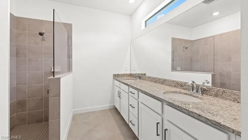 Davis Love III championship golf course, a resort-style clubhouse, fitness center, swimming pool and sports courts, as well as miles of interconnected sidewalks surrounded by lakes and preserves. This single-story home features a split floorplan that divides the comfortable bedrooms with an open layout among the dining room, kitchen and family room. An attached lanai offers indoor-outdoor hosting opportunities, while the nearby owner’s suite showcases two walk-in closets. Prices and features may vary and are subject to change. Photos are for