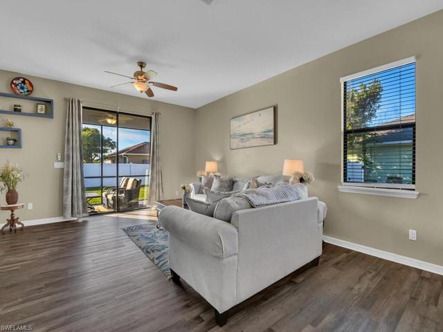 Fantastic 4 bedroom 2 bath 2 car garage home in the SW Cape. This property built in 2015 boasts over 1800sf of living area, huge kitchen with granite countertops and stainless-steel appliances, large living room with high ceilings, spacious master bedroom and guest bedrooms, large closets with custom cabinetry, nice master bath with separate soaking tub, luxury vinyl tile throughout the home, loads of outdoor living space in the screened lanai, so many extras including NEW ROOF in 2023, Fenced yard, lush landscaping, newer appliances and AC and so much more. Great southwest location close to restaurants, schools and shopping!!