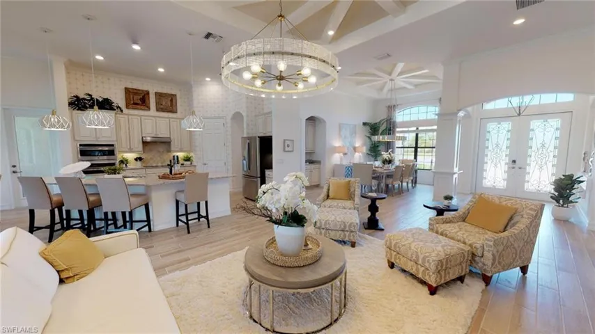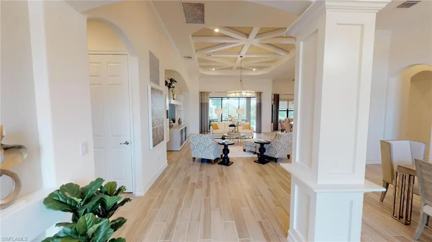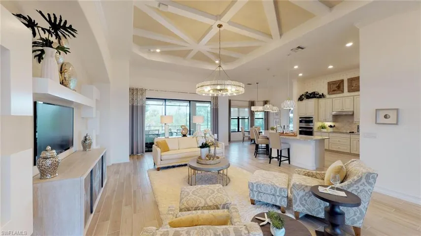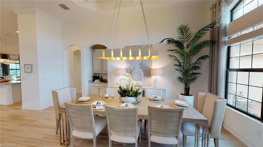 complemented by a bundled social membership in Ave Maria, FL. As a golfer’s paradise, the community features a 18-hole golf course, a state-of-the-art clubhouse and other luxury amenities for residents to enjoy. This luxe single- story home features a formal dining room off the foyer, followed by an open Great Room with elegant tray ceilings and glass sliders to the oversized covered lanai. In addition to the sprawling owner’s suite, there are two secondary bedrooms and a versatile den. For extra charm, there are tall, arched entryways that decorate the home. Prices and features may vary and are subject to change. Photos are for illustrative purposes only. Estimated delivery date is Feb/Mar 2025