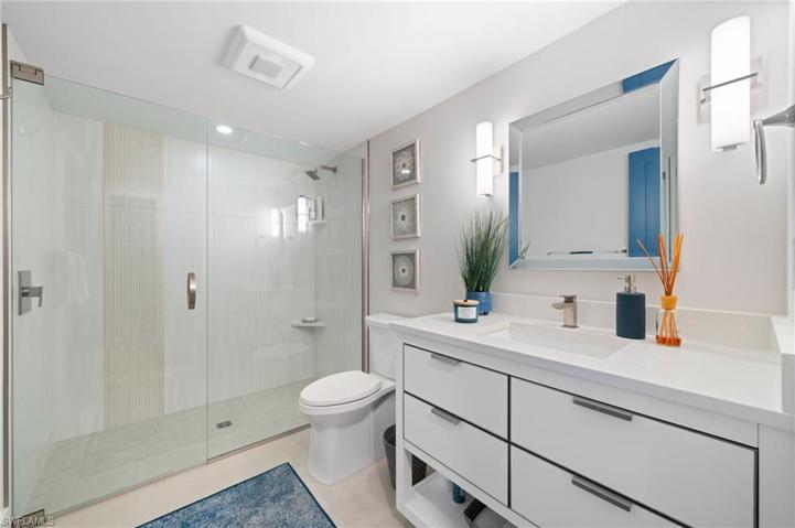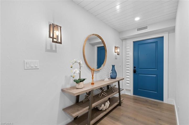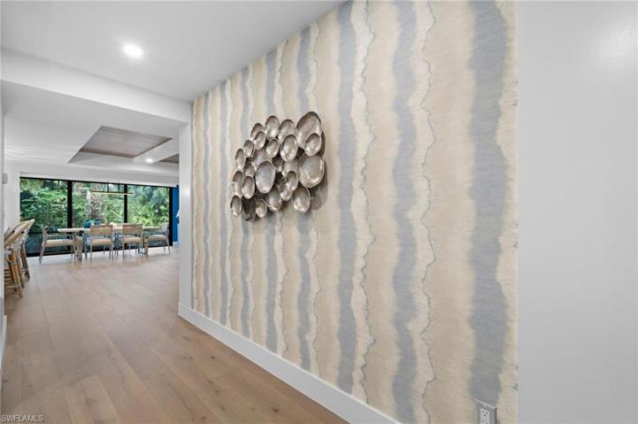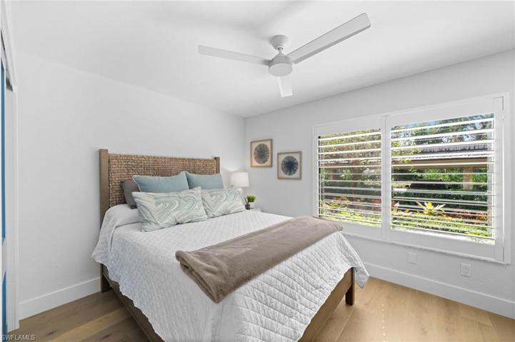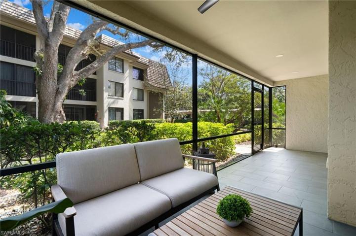 Completely and Totally RENOVATED and FURNISHED 3 bedroom condo in a chic style by Ashmore Designs awaits the descriminating buyer. Do nothing but move right in. This home was stripped down and new plumbing, new electrical, new dry wall and new new everything came to life. Open concept floor plan is anchored by neutral French Oak wood floors and capped by wood designed ceilings punctuated by crisp white beams! Walls of glass sliders make a sunlit garden home while remote shades give night privacy. The transitional kitchen is a combination of wood cabinetry and white Quartz counters matching the backsplash wall. You will thrill to welcome out of town guests in comfortably furnished bedrooms, a large gathering dining table, and outdoor space. The screened Lanai is glorious and beckons for morning coffee or a late night glass of wine listening to the trickle of the water feature and the crickets. Plan your day around walking to the Waterside Shops and Restaurants or taking the Tram to the incredible Beach Clubs which is reason enough to live and belong to Pelican Bay. Dont miss this one as you have nothing to do but move in and enjoy!!!