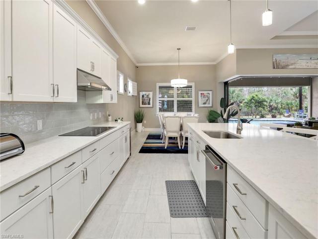 This impeccably maintained Pinnacle residence south facing lanai is situated on a hammerhead cul-de-sac featuring highly desirable private preserve views. The attention to detail shines as soon as you enter the redesigned front entry into this spacious floor plan with UPGRADES GALORE. Enjoy crown molding, tray ceilings, upgraded tile and laminate flooring, plantation shutters, ceiling fans, custom closets. Entertain your guests in the gourmet kitchen featuring quartz counters, upgraded SS appliances, soft-close drawers and slide out shelves. Walk outdoors through the zero corner sliding glass doors leading to the stunning outdoor oasis, featuring an extended lanai deck w/ marble tiling, heated salt-water pool and spa, custom lighting and picture frame views of the preserve and landscaping. Additional highlights include generator, 500 gal propane tank, remote no-see-um screen, insulated a/c garage w/ 4′ extension, slat wall and overhead storage, Kinetico H20 system, hurricane shutters and more. This resort style community includes a clubhouse, restaurant, fitness center, pool, spa, pickleball, tennis, bocce ball, kayaking, canoeing, fishing, etc. NO CDD, LOW FEES, NO FLOOD INS.
