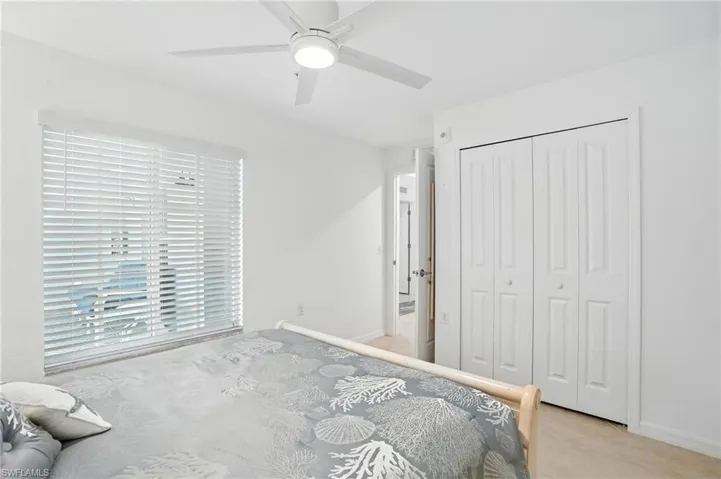 Enjoy serene mornings and breathtaking sunsets with two screened lanais—the front lanai features roller shades for privacy, while the back lanai includes a table and 4-chair set with a rug (conveys with purchase). A vertical accordion shade on the sliding glass door offers style and function.