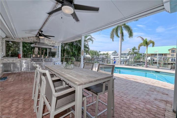 Highly sought after TURNKEY, waterfront property with a pool is now available and comes fully equipped, offering easy access to the stunning Gulf beaches of SWFL! Situated in a boating community, this residence lets you enjoy a waterfront lifestyle at your leisure. This home underwent an extensive renovation. Every aspect of this property has been carefully remodeled, featuring numerous enhancements, such as elegant travertine tile, granite countertops, updated bathrooms, custom kitchen installations, a butlers pantry, a wet bar, all-new appliances, a recently installed A/C system, updated electrical and plumbing, a tile roof, and a spacious 3-car garage. Additionally, all windows and sliding doors have electric hurricane shutters for added convenience and safety. Step into outdoor living at its finest on the expansive brick patio, complete with a fully equipped outdoor kitchen featuring two built-in gas grills and a kitchen sink, among other amenities. The property also boasts a large wooden dock with two boat lifts(one 16,000 pound the other is 10,000 pounds), offering breathtaking canal views and swift access to the Gulf. This unique home stands apart from the rest! Schedule your private showing today!! Owner Financing Available.