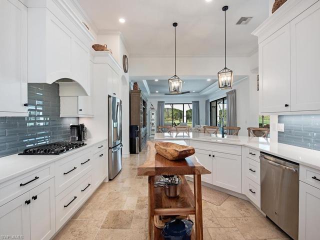 H12654 Extensive renovations, tasteful design, 4BR + Den, 4BA single-family dream home in Runaway Bay has captivating water & golf course views. Meticulously updated, the improvements include a new kitchen featuring soft-close cabinetry, lowered quartz countertops, glass backsplash, pendant lighting & a wood island. All 3 AC units are new, & a new Generac generator ensures uninterrupted power. New paint inside & out, 3 baths w/new cabinets, quartz counters, fixtures & hardware, new window treatments throughout & more. The extended lanai features travertine decking, spa, summer kitchen & the inviting pool was recently resurfaced w/new tile & 3 new Storm Smart electric hurricane screens were added. Impact glass windows & doors ensure safety & quiet. An ideal blend of sophistication & functionality, this property epitomizes modern elegance in a tranquil setting. Enjoy Fiddler’s Creek world-class amenities: club & spa, fitness center, resort-style pools, tennis, restaurants & optional golf, beach & marina memberships. Excitingly, a new golf clubhouse will open in 1st quarter 2024, memberships available. Don’t miss the chance to embrace luxury living in this meticulously upgraded home!
