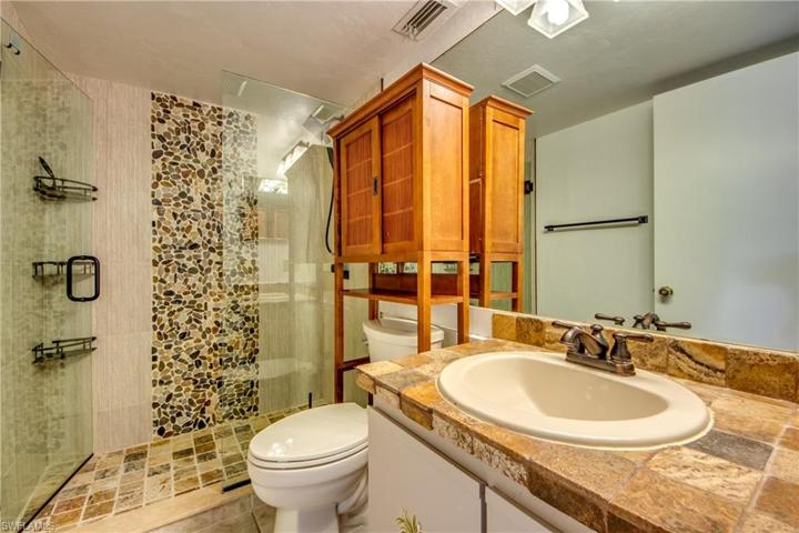 The perfect location near the beaches, shopping, and entertainment, leads you to this quiet hideaway you must see! This freshly painted unit, with a new roof, new screen and features many upgrades such as en-suite bath with walk-in glass shower, built-in storage in both the walk-in closet, and guest room closet with updated bathrooms as well. The kitchen features granite countertops, drawers, a Lazy Susan, spice drawer and renovated ceiling. Golf 5 minutes away! Your private, enclosed courtyard with storage shed is ready for your grill and hot tub. Ready as a permanent, seasonal, or as an investment property.