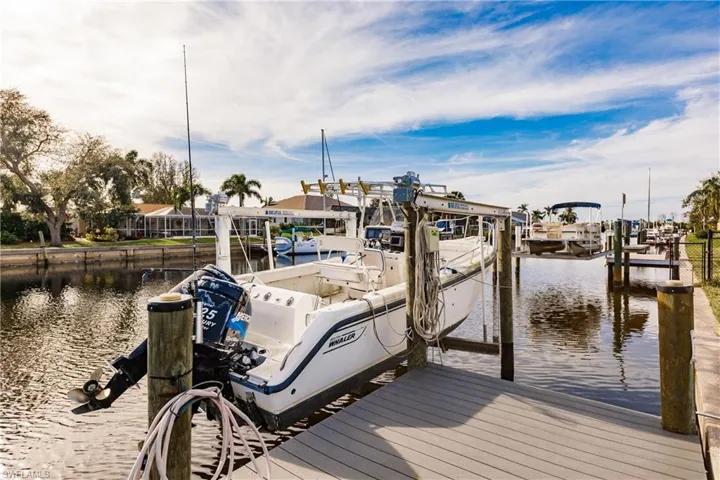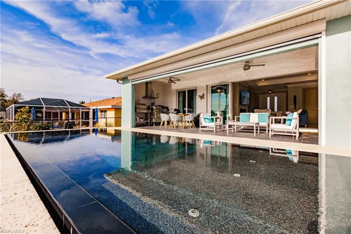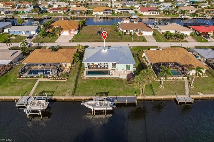 Dive into the epitome of luxury living, where the allure of new construction meets the enchantment of coastal charm—no waiting required! Behold this contemporary Key West-style masterpiece, meticulously crafted in 2022 by the renowned Thornberry Custom Builders, nestled along a tranquil sailboat canal mere minutes from the breathtaking vistas of Charlotte Harbor. Set sail on your waterfront adventures with a deluxe 10,000 lb. boatlift and a 30 ft composite dock, complete with fresh water and 50-amp electric service. This opulent 3-bedroom, 2-bathroom, 2-car garage sanctuary beckons with an expansive open-concept kitchen and living area, seamlessly connected by striking 90-degree sliding glass doors. Bask in the natural radiance pouring in from the captivating cupola overhead or cozy up by the inviting propane fireplace on cooler evenings. Step outside onto the sprawling approximately 280 sq ft covered lanai, an outdoor haven adorned with a Storm SmartTM retractable screen, tile flooring, and ceiling fans, perfect for savoring mesmerizing views of the reflecting pool and Florida’s fiery sunsets. The gourmet kitchen exudes elegance with sleek cabinets, Cambria Brittanica quartz countertops, and a show-stopping island boasting a built-in cooktop and downdraft exhaust system. And don’t forget the expansive pantry/bonus room, a hidden gem just off the garage. Unwind in the tranquil bedrooms, where wood-finish, solid-core interior doors with invisible hinges and magnetic locks promise privacy and sophistication. The primary suite indulges with a lavish ensuite and a sprawling walk-in closet. Admire the exquisite custom live-edge countertops, meticulously crafted from imported exotic hardwood and coated with epoxy for enduring allure. Pamper yourself in the fully tiled showers with luxurious rain head fixtures, complemented by wall-hung toilets supplied by a Rinnai propane tankless water heater. But the luxury doesn’t end there—this home boasts an array of premium features, from its durable metal roof and impact windows to its fenced-in yard, plantation shutters, and epoxy flooring in the garage. Stay prepared with a generator pad awaiting installation and a 500-gallon underground propane tank ensuring uninterrupted comfort. Plus, enjoy the peace of mind of a transferrable 10-year structural warranty. Plus, rest assured knowing this home survived Florida’s latest hurricane, Ian with ZERO damage and boasts a low property insurance premium, adding an extra layer of security to your coastal paradise. Nestled in the sought-after Buena Vista neighborhood of Port Charlotte, this coastal paradise offers convenient access to the Port Charlotte Beach Complex and all the amenities you desire. And with the Sunseeker Resort just around the corner and Punta Gorda’s vibrant downtown a short drive away, endless adventures await. Don’t miss your chance to experience the epitome of coastal luxury—schedule your private showing today and make this dream home yours!