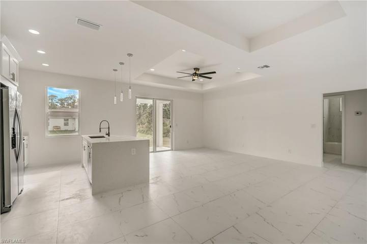 PRICED TO SELL FAST, lowest price per sqft. UPGRADED porcelain Venato tile. – NEW CONSTRUCTION; bring any type of financing. Elevated pad to avoid flood – 9 Feet ceiling with 10 feet vaulted ceilings!, Open floor plan, lots of natural light, 3 bedroom + DEN/office and 2 bathrooms. Best impact windows in the market ECO WINDOWS. White quartz countertops, tile flooring throughout the entire home. Large Master Bedroom with two walk-in closets, master bath features a modern freestanding shower and dual sinks. Easy access to I-75. Minutes away from Fort Myers and Southwest Florida International Airport and the great beaches of Fort Myers and Sanibel & Captiva Island. Schedule your showing today! Ready to move-in. VERY EASY TO SHOW, just call and go right now! 3d tour might not be same outdoor area for the house, but same layout inside.