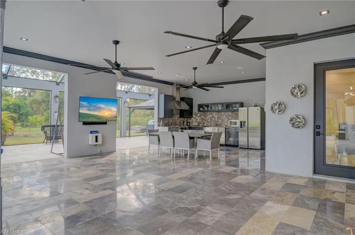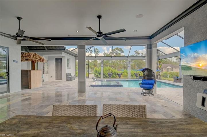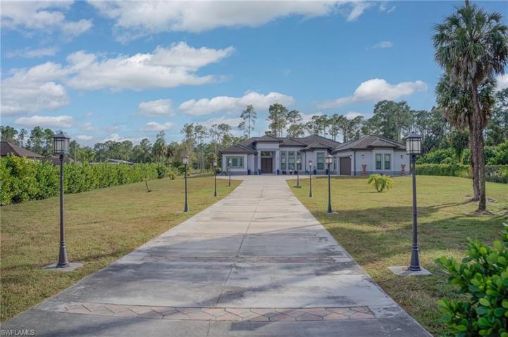 Your piece of Paradise is here! This one-of-a-kind, luxurious estate home sits on a beautifully landscaped 2.58 acres. This property has much more to boast, with a spacious kitchen that features a walk-in pantry, custom California closets, 6 bedrooms, 5 full bathrooms, high volume tray ceilings, Italian porcelain tile throughout, Impact glass windows and doors, Reverse Osmosis System, and an oversized 3-car garage with *insulated garage doors. The backyard offers an Oasis to escape from everyday life, showcasing a complete outdoor kitchen with more than enough area to BBQ under the sun or lounge around the beautiful resort-style saltwater pool. Embrace the backyard serenity with its greenery, fruit trees, and fire pit. This home is located right off Golden Gate Boulevard near Wilson Boulevard, with new shopping centers coming into the area. Don’t miss out on this spectacular home. Submit your offer today!