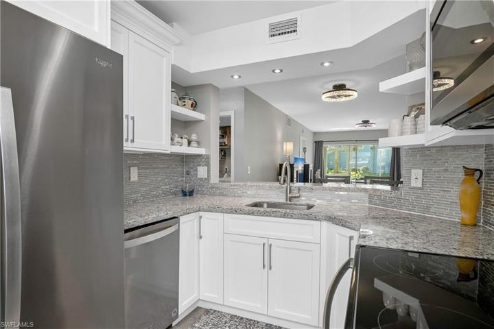 Looking for a move in ready, completely remodeled 1st floor 2-bedroom 2 bath condo in North Naples with Southern exposure and beautiful lake views? Well, here it is! Listen to just some of the amenities of this property and see why we think it’s currently the best deal in all of Pipers Pointe. LVT Plank style flooring throughout except the bathrooms. Beautiful eat-in kitchen with breakfast bar, granite counter tops, glass tile backsplash, soft close white shaker cabinets and drawers and Whirlpool stainless steel appliances. Formal dining area. Brick pattern porcelain tiled lanai with electric hurricane shutter for added protection and security overlooking the lake. Large master suite with walk-in closet. Master bathroom has polished porcelain tile floor, granite counter tops, dual vanities, and a spacious walk-in shower with tiled walls and glass tile accents. Utility room with washer and dryer and plenty of storage space. Within minutes to the Gulf of Mexico, Costco, Whole Foods, Trader Joes, Shopping and Dining. See if you can find a property in this condition, with these amenities, in this location, for this price, then come and see what a real deal looks like in Naples Florida.