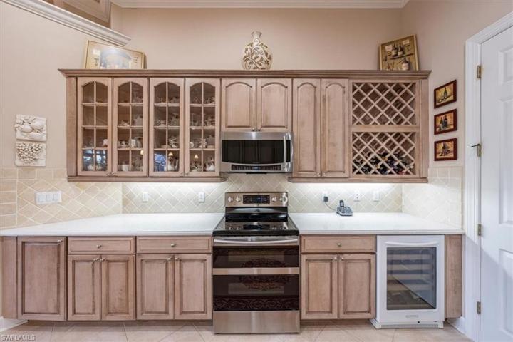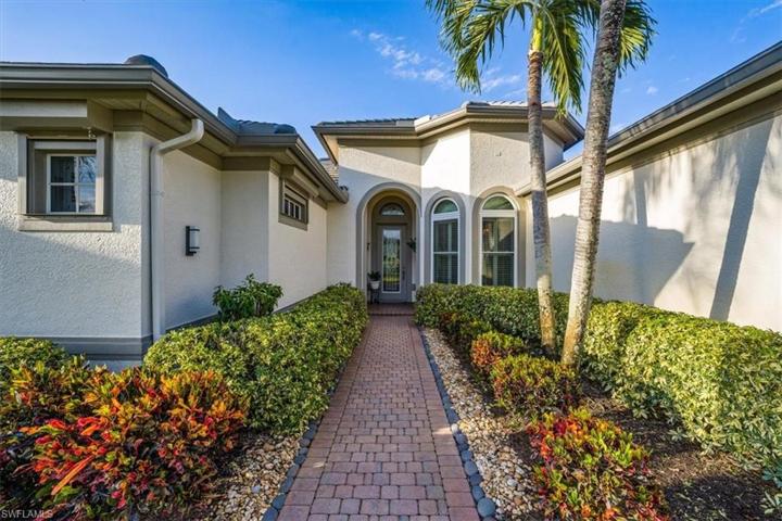 Nestled on a .29 acre lot, this Victora floor plan offers 3 bedrooms +Den, 2.5 bathrooms, 2 car garage & 2,561 sf under air. Features include Newer roof (2021), electric hurricane shutters, Calm, neutral finishes throughout, w/tile flooring in the main living areas, tray ceilings, crown molding & plantation shutters. Delightful kitchen that opens to the family room with quartz counter tops, stainless steel appliances, pantry & plenty of counter space as well as wine storage. Relax on the large, screened lanai featuring an outdoor kitchen & covered eating area or take a dip in the heated pool & spa, all while enjoying the FANTASTIC view of the lake & the North 17th Hole through the picture window screen! The spacious owner’s suite offers a sitting area, direct lanai access & the spa-like bathroom features dual sinks, ladies’ vanity, soaking tub & walk-in shower. Shadow Wood Country Club offers varied membership levels offering 3 championship golf courses, tennis, pickle ball, private beach club access, health & lifestyle fitness center, wellness spa & private dining in the lakeside restaurant. Conveniently located near upscale dining, shopping, Coconut Point, airport & beaches.