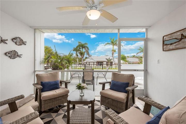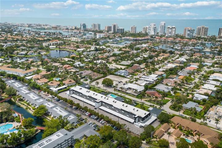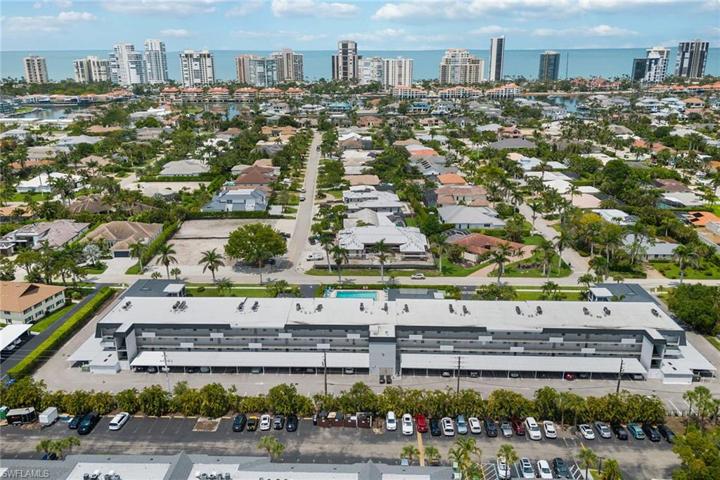 The pinnacle of exclusive coastal living. This stunning 2-bed, 2-bath residence boasts over 1,200 sqft of sophisticated living space. As you enter, you are immediately captivated by the open-concept layout that showcases floor-to-ceiling glass sliders. The kitchen features white shaker-style cabinets, granite counters and top-of-the-line stainless steel appliances. The living and dining areas effortlessly flow together, creating the perfect setting for both entertaining and intimate gatherings. An en-suite bath with frameless shower and a walk-in closet with built-ins complete the primary suite, while the spacious guest bedroom is equally impressive. The screened-in lanai and expansive terrace offer breathtaking panoramic views of the iconic Park Shore skyline, inviting you to indulge in the idyllic Naples lifestyle. The residence also comes with covered parking, private storage locker, washer/dryer, plantation shutters and impact-resistant windows/sliders throughout. Harborside Terrace residents enjoy luxury amenities, including a swimming pool, shuffleboard, outdoor grill area, a social room and easy access to pristine beaches, world-class golf courses and fine dining.