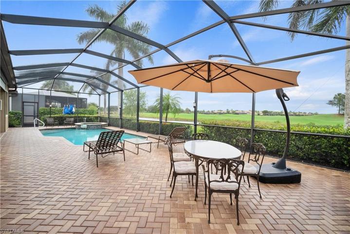 Golf membership included! This is your chance to own an Sawgrass, the largest and rarest estate home floorplan, on the best street at Heritage Bay- Biscayne Bay Lane! Featuring 5 bedrooms and 3 full baths, the Sawgrass has plenty of space for lots of guests to stay comfortably! Enjoy a gorgeous golf & water view from the large covered outdoor area or while relaxing in your pool and spa, absolutely perfect for entertaining! This Sawgrass is loaded with upgrades, including plantation shutters throughout, a StormSmart hurricane sun shade, a massive Subzero fridge, and a built-in dining room bar with Subzero wine fridge. Heritage Bay is the BEST bundled golf community in Naples, with 27 holes of championship golf, a world-class clubhouse including all-new ‘Grille Room’ restaurant overlooking the 27th green, and a resort-style pool with NEW pool-side Cabana bar & grille. HB also features 7 HAR-TRU tennis courts, a fitness center, full-time activities director and social calendar, pickleball, bocce & more! The special assessment for these renovations was paid in full.