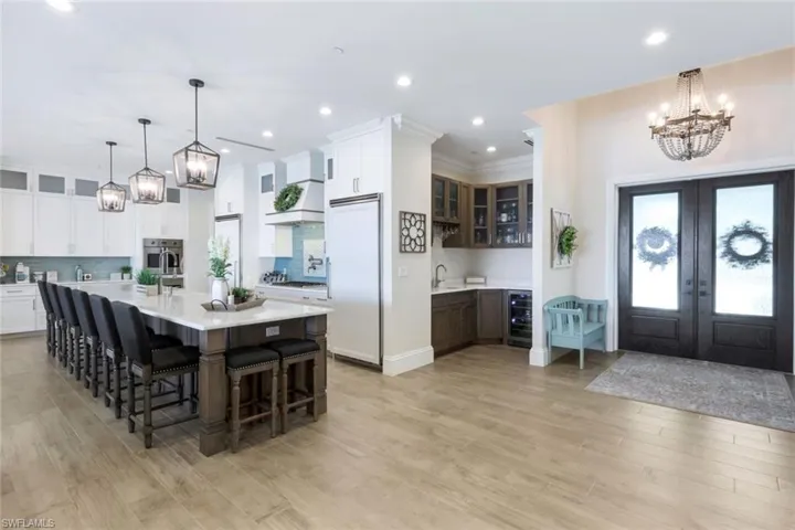 On over a half-acre in a highly desirable Riverfront neighborhood just east of the Franklin Locks, this newly built 3 bed, 3.5 bath home boasts an abundance of luxury features including a three car garage, making it the epitome of comfort & sophistication. High coffered ceilings, large impact resistant windows, & an intelligent use of natural light infuse the home with a bright & airy ambiance. The open-concept layout seamlessly connects the living, dining, & kitchen areas. The gourmet kitchen features Viking Microwave & Ovens, a Viking Gas Stove with pot filler, ample cabinetry, a walk in Pantry, a convenient wet bar with wine fridge, AND an oversized island – making this kitchen perfect for preparing culinary delights while engaging with loved ones. The primary suite is a sanctuary in itself with River views, a luxurious en-suite bathroom with a spa-like bathtub, a walk-in shower, & dual vanities. This residence features many modern amenities such as a whole home RO system, fire sprinkler system, mosquito misting system, an electric boat cover curtain, and a whole home propane generator with automatic transfer switch! The 1000 gallon propane tank also supplies your stove, pool & spa heater, grill, & tankless water heater. The backyard boasts a shimmering pool & spa, inviting you to take a refreshing dip on warm summer days. Plus the built in outdoor kitchen space, this is the entertainers dream home! Catch the breathtaking sunsets off the 900 square foot boat house with composite dock – which includes two electric boat lifts and room for your rocking chairs. Whether you’re hosting a poolside barbecue, taking family and friends on the boat or simply savoring a moment of solitude, this outdoor haven caters to every desire. There was not a detail spared nor convenience overlooked in the construction of this immaculate home.
