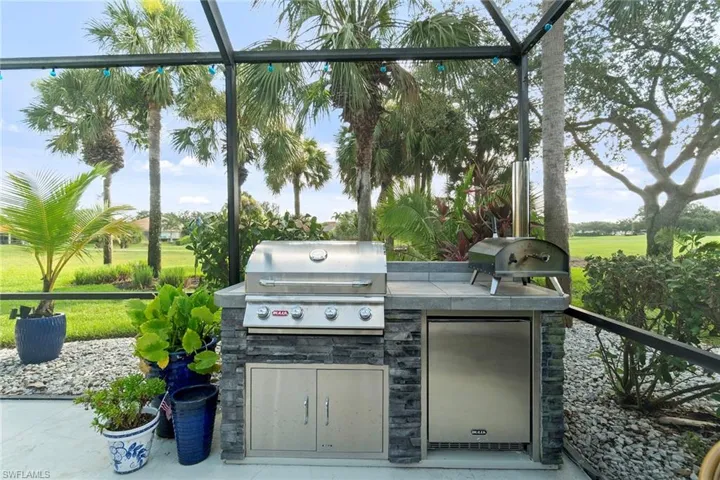 Live the indoor-outdoor lifestyle in this beautifully updated residence in Callaway Greens at Gateway, with a private pool, lush views, and modern finishes throughout. Bright and welcoming, the interior features tile flooring in the main areas and cohesive luxury vinyl plank in all bedrooms. Soaring ceilings, plantation shutters, sun-filtering shades, and a 2021 interior repaint add to the clean, modern feel. Pocketing sliders off the living room extend the space outdoors, inviting year-round relaxation by the pool. The kitchen impresses with granite countertops, a wine cooler, coffee bar, pantry, and breakfast bar—all enhanced by recessed lighting and 2021 updates including newer cabinetry, refrigerator, and dishwasher. The primary suite offers a massive walk-in closet and a beautifully remodeled ensuite bath with granite countertops and a spa-like shower featuring multiple showerheads. The second bath is equally stylish with quartz countertops and a new shower. Additional features include a 2021 roof, 2021 washer and dryer, water softener system, garage with utility sink, cabinets, storage racks and a convenient electric vehicle charger. Minutes from shopping and everyday conveniences, plus quick access to Interstate 75, RSW International Airport, and the spring training ballparks for the Red Sox and Twins. This move-in-ready gem combines luxury updates, thoughtful design and an unbeatable location.