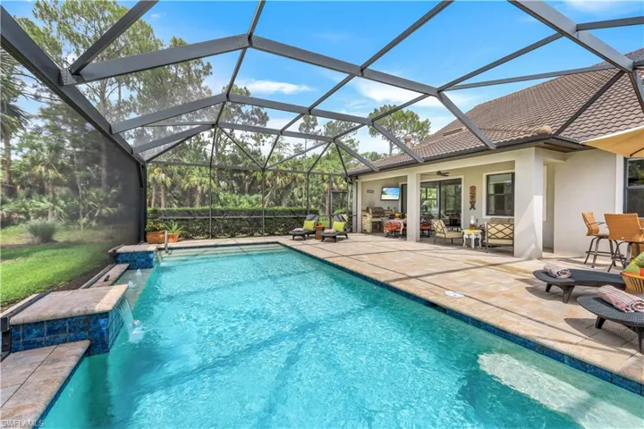 The extended lanai, enhanced with a picture screen for unobstructed views, creates an exceptional indoor-outdoor experience. Enjoy your gas-heated saltwater pool, relax in total privacy with no home located to the east, or entertain effortlessly with the built-in gas grill and mini-fridge.