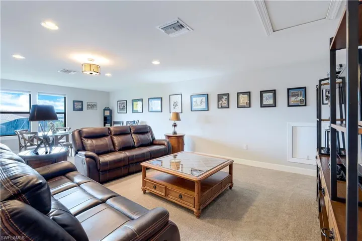 Built in 2017, this 3-bedroom plus den, 3-bath residence also features an impressive upstairs loft retreat complete with a private bedroom and full bathroom, ideal for guests or multigenerational living. The beautifully designed kitchen is a true centerpiece for culinary enthusiasts, seamlessly flowing into the spacious living areas and out through impact sliding glass doors to the extraordinary outdoor living space.