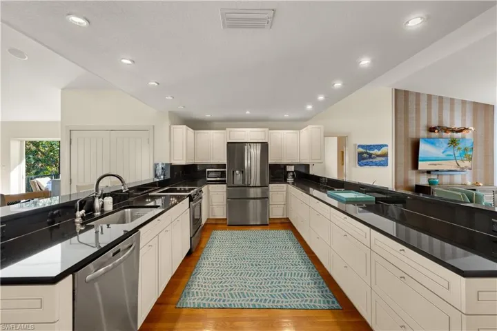Total price reduction of over $300,000!! This ideal island residence has all the special qualities of a really well-built home but also exudes a near-beach island vibe that rarely comes on the market. Totally unique and custom remodeled by a local craftsman, this home shows like a model and is offered turnkey! Open floor plan with two living areas flanking kitchen with soaring ceilings, hardwood floors and you will love the living in a treehouse feeling when all four sets of impact sliding doors surrounding the home are fully open. Main level never touched by hurricanes and many new improvements added. Custom matching cabinetry, doors, closets and baths throughout. Beautiful lushly landscaped pool area with new pool heater and air conditioners elevated 8 feet. Standing seam metal roof and Hardie board siding. The spacious lower level is designed for resilience with copious covered and protected storage areas for three cars, kayaks, tools, pool toys and more.