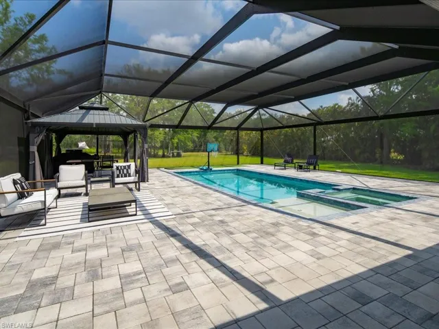 Modern luxe meets casual elegance in this sprawling residence featuring four bedrooms and two bathrooms in more than 2,400 square feet. Located in Logan Woods, this beautiful home boasts more than 2.8 acres and was fully remodeled in 2023 to create a practically brand new house with new A/C, new water heater, new roof (2022), new hurricane impact windows and doors, energy efficient spray foam insulation, new electric panels, new kitchen, new bathrooms, new well, new septic field (2024), whole home reverse osmosis system, new flooring, Lutron lighting, all new appliances, and much more. A 2,500-square-foot patio encloses a new saltwater pool with no-see-um screens, and plenty of space to enjoy the Florida sun. A detached three-car-garage will store your vehicles, as well as all of the toys needed to play in your spacious fully fenced yard featuring a fire pit and beautiful natural landscape. Don’t miss your opportunity to live a carefree lifestyle with all of the luxury and none of the restrictions in this gorgeous estate home.