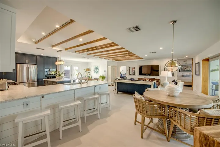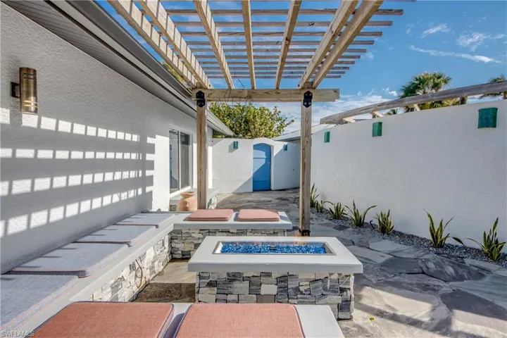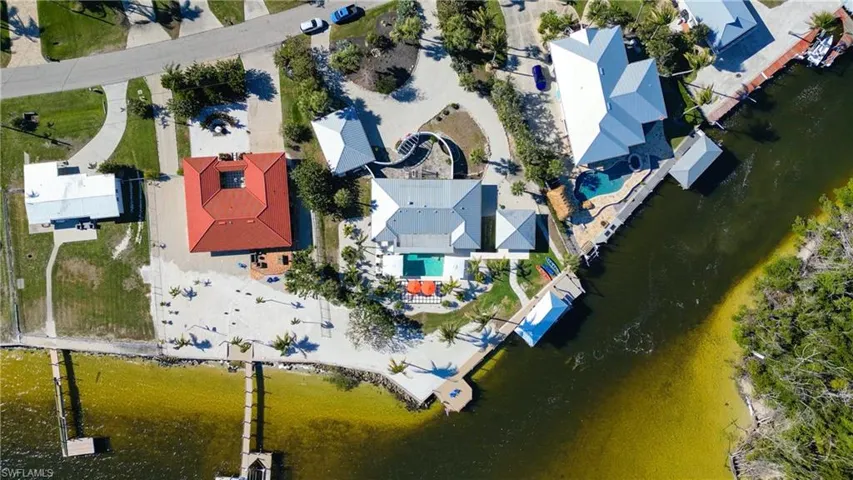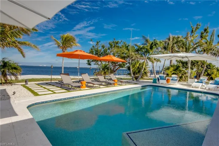 .63-acre Ultra Private Luxurious Island Estate! This beautiful estate sits on a huge .63-acre point lot offering the most incredible views along with unmatched privacy. The grounds of this estate make you feel like you have your own private resort. As you walk through the custom copper gate into the courtyard, featuring a water feature and gas fire pit, an immediate sense of relaxation takes over. Enter the front door and beautiful open water views appear, that is when you know you have found paradise! The open floor plan offers views from virtually every room. The main home features a master suite and TWO junior master suites. The high-end kitchen is any chef’s dream, featuring leathered quartz countertops, Kitchen Aide and Meile appliances, including a gas range, Meile wall coffee drink machine, a wine bar with fridge and an incredible amount of storage. Behind the kitchen is an oversized laundry room and a home gym space that could easily be converted to a 4th bedroom if one so chooses. The main living space has pocket sliders that lead to the absolutely stunning backyard. As you step out to the ultimate outdoor retreat you are greeted by the heated saltwater pool, the custom sundeck and your very own private beach that stretches over 100ft along the seawall point. You will love the cabana that features a full bath, kitchenette, wall fireplace and unbelievable views. The composite dock runs the entire length of the canal complete with a kayak lift, covered boatlift and a huge deck on the point perfect for taking in Pine Island’s world famous sunsets or watching the resident dolphins that visit multiple times a day, make sure to check out the drone footage where they put on a show! Other great attributes of this home include an oversized separate garage with room for 2 cars and a workshop, impact resistant doors and windows, standing seam metal roof, whole home Generac generator, ample parking and a privacy wall. The location of this home offers access to world class fishing, incredible nature and with a quick boat ride you will be in the Gulf enjoying the beautiful white sand beaches! St James City is a golf cart community with several restaurants, marina and general store. This property is truly one of a kind! Do not miss the virtual tours there are so many other beautiful pictures as well as great footage of the resident dolphin family! Come see this ultimate island estate today and start Living the Island Life!