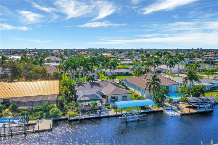 SAILBOAT Access – 8 Minutes to Open Water! Boaters will be elated by the composite dock, 16k boat lift w/canopy PLUS 1500lb lift for jet ski or skiff. New roof JANUARY 2023 & NO FLOODING & IMPACT windows & doors! Experience waterfront living in this beautifully updated home w/2389 sqft under air, 3BR, 2BA & 2 Car garage. Complete 2016 renovation blends modern elegance & practical functionality featuring expanded guest suite, trey/coffered ceilings, impact windows/doors, whole house water filtration, diagonal tile, fresh paint & surround sound. Expanded kitchen has granite counters w/2 sinks, wet bar, wood cabinets, storage pull outs, soft close technology, bar seating & brand new LG Smart appliance package. Enjoy indoor-outdoor living w/pocket sliding glass doors, phantom screens & large covered lanai all overlooking the solar heated pool, sun deck & canal views through picture window screens! Perfect for the entertainer or for quiet personal enjoyment nestled in quiet SW Cape Coral boating community. Furnishings are negotiable for the full package deal! You deserve to be close to everything that SWFL has to offer: boat, kayak, jet ski, fish; or take a dip in your private oasis!