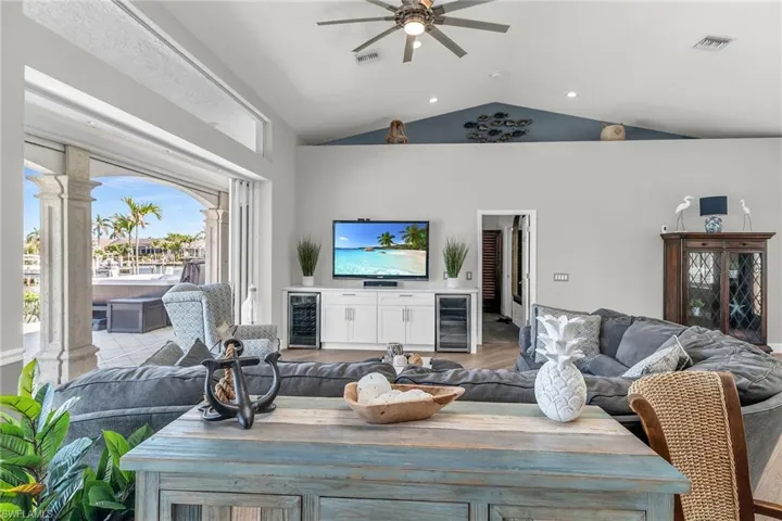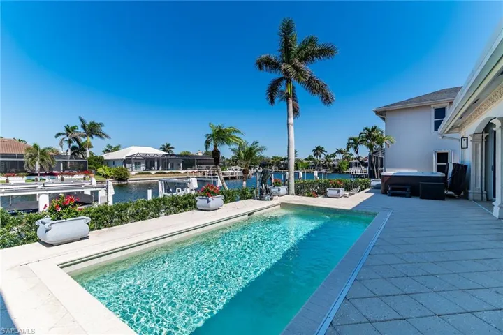Welcome to your coastal dream home on Marco Island, where luxury meets convenience. This freshly landscaped gem is designed for both relaxation and entertaining, with a bright, open floor plan. Located in the heart of Marco Island, you’ll enjoy easy access to top-rated restaurants, shopping, and pristine beaches, all just moments away. Boating enthusiasts will be in paradise with a stunning dock situated on a 134 ft wide canal, offering access to the waterways. The dock features three lifts, including a 10k lb lift (currently configured as a dual jet ski platform, but easily converted back for a large boat), a 7k lb lift, and a piling swing lift for personal watercraft, ensuring ample space for all your aquatic toys. Inside, this home is a true masterpiece, meticulously maintained and showcasing soaring vaulted ceilings, elegant custom plantation shutters throughout and spacious rooms. Whether you’re hosting a gathering or relaxing, you’ll appreciate the seamless flow and generous space. The extra-wide garage provides plenty of room for storage of bikes and beach gear. With premium finishes, stainless steel appliances, 2 wine refrigerators and attention to every detail, this home offers the perfect combination of comfort, style, and functionality. Don’t miss your opportunity to own a slice of paradise—schedule your private tour today!