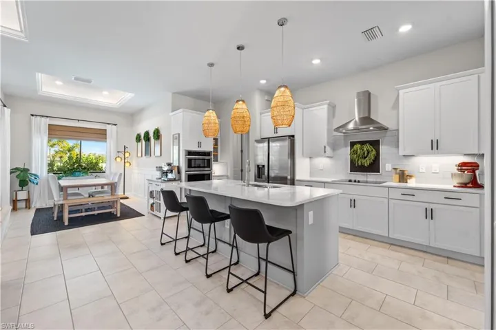 Welcome to 427 NW 37th Ave! | This thoughtfully designed 3-BEDROOM+DEN, 2-bath home with a 3 CAR GARAGE showcases an open-concept layout enhanced by tray ceilings, abundant natural light, and seamless indoor-outdoor flow ideal for everyday living and entertaining. The heart of the home is a gourmet kitchen featuring an oversized island, white cabinetry, stainless appliances including built-in microwave oven, generous prep space, and direct connection to the main living and dining areas. The spacious primary suite provides a private retreat with spa-inspired finishes, dual vanities, soaking tub, and a walk-in glass shower. Step outside to your screened and heated pool area, surrounded by paver decking and a fully fenced backyard designed for privacy and relaxation. A row of mature clusias and Foxtail palms line the rear yard, creating a true tropical backdrop while enhancing privacy and curb appeal. Additional upgrades include metal hurricane shutters, whole-home reverse osmosis system, irrigation system, EV plug, generator hook-up, epoxy-finished garage floor and an extended paver driveway leading to the 3-car garage. Ideally positioned just minutes from the future Tropicana Park — a brand-new waterfront neighborhood park currently under construction featuring walking trails, fitness stations, playground areas, gathering spaces, and planned kayak launch access — this location continues to benefit from ongoing city investment and growth in Northwest Cape Coral. Boating enthusiasts will appreciate convenient access to multiple nearby public boat ramps, providing easy reach to Matlacha Pass, Gulf waters, renowned fishing grounds, pristine beaches, and Southwest Florida’s barrier islands. Golf lovers are just minutes from both Palmetto Pines Country Club and Coral Oaks Golf Course. Everyday conveniences including shopping, dining, local events, Starbucks, Target, Publix, and many of the area’s most popular restaurants are close by. The home also benefits from proximity to the highly anticipated Seven Islands development, a future waterfront destination planned to feature marinas, dining, shopping, park space, recreational green areas, and expanded coastal lifestyle amenities. Offering newer construction quality, functional design, and proximity to one of the area’s most anticipated recreational developments, this home delivers the complete Southwest Florida lifestyle opportunity buyers are seeking.