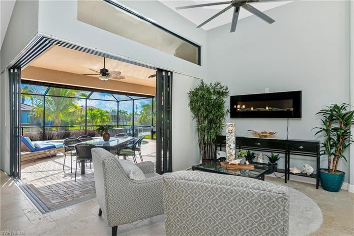 Indulge in the epitome of luxury living with this stunning residence nestled in the highly sought-after SW Cape Coral neighborhood. Boasting a flawless fusion of elegance and functionality, this home offers 3 Bedrooms, a den/study, 2 ½ Baths, and a 3-Car Garage. The heart of the home is a Chef’s Dream Kitchen adorned with Custom Wood Cabinetry, Granite Countertops, and top-tier Stainless Steel Appliances. Traverse the Travertine Stone Flooring that graces every inch of this exquisite abode, highlighted by Tray & Coffered Ceilings and Impact Resistant Windows & Doors. Entertain seamlessly with the 90 Degree Disappearing Corner Sliding Glass Doors that open to a captivating outdoor oasis. Revel in Southern Rear Exposure as you lounge by the Sparkling Pool, surrounded by Brick Paver Decking and dual Covered Areas. The meticulously landscaped yard, partially fenced for children or pets, leads to a Tiered Paver Walkway guiding you to the Wrap-around Composite Dock featuring a 10,000 Lb. Lift and Boat Canopy. Impeccable in every detail, this home stands as a secure investment, offering your own sunset retreat in Cape Coral. Don’t miss the chance to make this masterpiece yours.