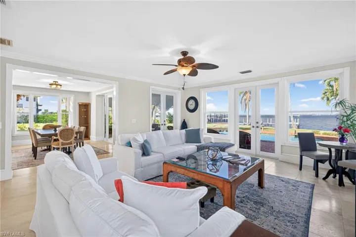 This exceptional 3 Bedroom + Den, 2.5 Bath riverfront residence offers direct Gulf access and sits on an expansive .61-acre estate lot with 116 feet of pristine Caloosahatchee River frontage. A masterful renovation of a classic 1926 Mediterranean home, the property reflects nearly a century of architectural pedigree—originally redesigned by Dan Sater, reconfigured and rebuilt in 1990, updated in 2010, and most recently transformed in 2023 with a sophisticated, modern aesthetic. Additional structural and mechanical enhancements include a whole-house repipe and new roof in 2022, as well as a new A/C system, appliances and hot water heater in 2023.