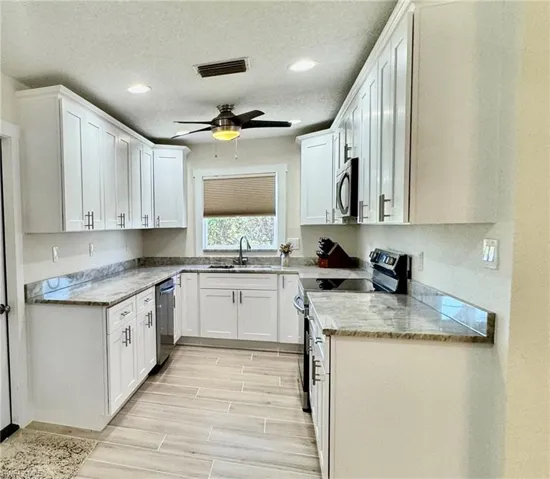 Inside, the home has been thoughtfully updated with a modern kitchen showcasing granite countertops, new custom cabinetry, and all new stainless steel appliances. The open and inviting layout creates a perfect space for entertaining or relaxing while enjoying the waterfront lifestyle.