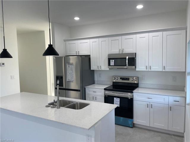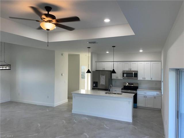 This beautiful new construction home offers an open floor plan with 3 bedrooms, 2 bathrooms, and a 2-car garage. Enjoy the spacious lanai and numerous upgrades, such as porcelain tile floors, 9-foot ceilings with tray accents, and upgraded lighting. The gourmet kitchen boasts white wood cabinets, a kitchen island, stainless steel appliances, and quartz countertops. Sliding glass doors in the living area lead to the outdoors. The master suite bathroom features double sinks, a walk-in shower, and two walk-in closets. It is located in a great southside Lehigh Acres neighborhood with easy access to Fort Myers, schools, and shopping centers. Don’t miss this opportunity – make an offer today!