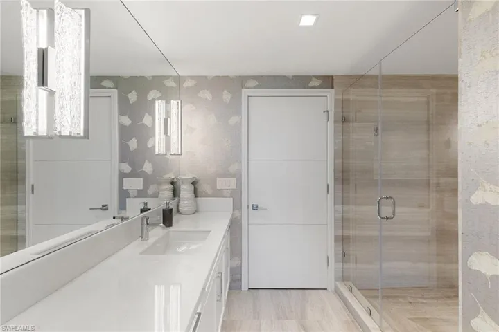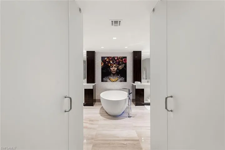 Rarely available end-unit condominium, offering forever unobstructed Gulf views from the entire northwest side of the building, with floor-to-ceiling windows framing breathtaking views to the west and northwest overlooking the Gulf and serene eastern views of the golf course. High above the Gulf, Mystique is the newest gem in Pelican Bay’s skyline, offering majestic vistas of the sparkling blue waters and mesmerizing sunsets. Recently reimagined by a renowned interior designer, this home showcases a refined design palette, blending luxury and tranquility in a spacious open floor plan, ideal for entertaining and relaxation. Enter into this exceptional residence and be welcomed by a series of refined finishes that exemplify casual elegance. The chef-inspired kitchen is outfitted with exquisite Carrara marble countertops, Wolf and Sub-Zero appliances, and sleek white cabinetry, while the beauty of Legno Bastone Italian wood floors flows throughout. The primary suite offers a private retreat with panoramic Gulf views from the bedroom and the spa-like bath. Complete with five-bedroom suites and abundant storage, this home is designed for comfortable living at every level. Includes EV charger. Mystique isn’t just about stunning aesthetics, it’s about an elevated lifestyle. Enjoy the convenience of 24/7 concierge services, making every need effortless. As a resident of Pelican Bay, you gain access to an array of world-class amenities, including private beachfront dining, beach access with chair and umbrella service, tennis and pickleball courts, fitness center, and miles of scenic recreational and biking paths. Just minutes from Artis-Naples and upscale Waterside Shops, Mystique offers a balance of peaceful living and easy access to culture and shopping. Accept this invitation to experience a life of unparalleled luxury, beauty and convenience.