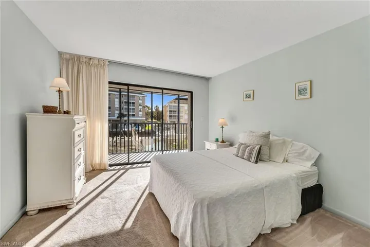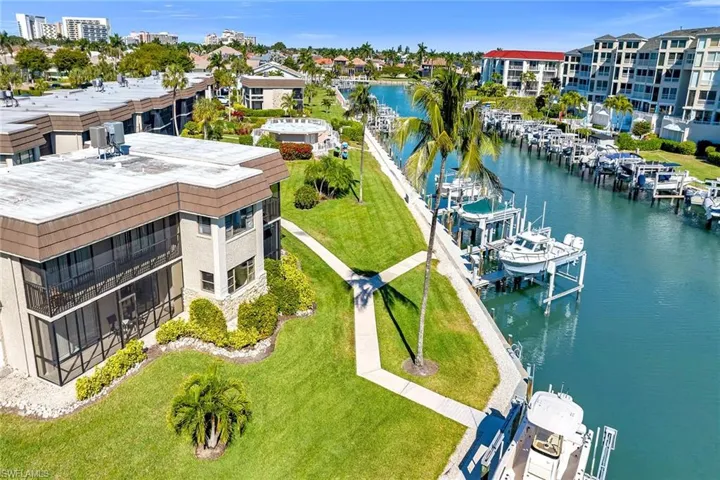 Rarely available in the desirable Crows Nest on Marco Island, this second-floor waterfront residence presents an exceptional opportunity to enjoy direct Gulf access with your assigned boat dock. Featuring two screened lanais and tranquil canal views, this light-filled two-bedroom, two-bath home embodies relaxed coastal living. The corner location enhances privacy while maximizing natural light and water views, creating an inviting retreat just moments from open water. Inside, a bright interior and wood-look porcelain tile flooring throughout the main living areas establish a clean, coastal aesthetic. The living room is thoughtfully designed to embrace the waterfront setting, with glass sliders opening to the lanai and showcasing serene canal views. The dining area also enjoys a glass slider to the screened lanai with water views, along with a separate door providing access to the second screened lanai, offering seamless indoor-outdoor flow ideal for entertaining or quiet relaxation. The kitchen is functional and welcoming, appointed with recessed lighting, white cabinetry, a pantry and a convenient bar counter for casual dining. Appliances include a cooktop, refrigerator/freezer, wall oven and microwave, supporting effortless meal preparation. The primary suite is a peaceful waterfront haven, featuring glass sliders to the screened lanai with calming water views and a walk-in closet with shelving. The en-suite bath offers a double vanity with a full-width mirror and a shower-tub combination with floor-to-ceiling tile and glass enclosure. The guest bedroom also enjoys lanai access and water views, while the nearby guest bath includes a shower-tub combination. A dedicated laundry area with a front-load washer and dryer, plus a utility sink, adds everyday convenience. This residence includes its private storage room, providing valuable extra space for beach gear, boating essentials and seasonal items. Residents enjoy access to a community pool and spa, and additional storage space, including room for bikes. Ideally near Marco Walk Plaza with its restaurants, shopping and movie theater, this waterfront residence is also just minutes from Marco Island’s pristine beaches, boutique shopping, fine dining, parks, museums and golf courses. Whether boating, kayaking, paddleboarding or simply soaking in the island lifestyle, this property offers an exceptional blend of waterfront access and coastal comfort.